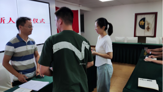 仪式上,两名新人就个人经历,对现工作岗位的认识以及对未来工作的发展规划进行表态发言,并分享了走上新工作岗位的激动之情。