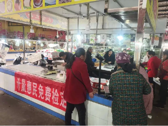 为规范市场计量秩序,守护群众“菜篮子”公平交易,近日,四川省乐山市沐川县市场监管局计量所组织专业技术人员,先后走进综合农贸市场、东门农贸市场及丰业财富广场,开展计量器具免费检定“上门服务”,以精准计量筑牢诚信经营根基。