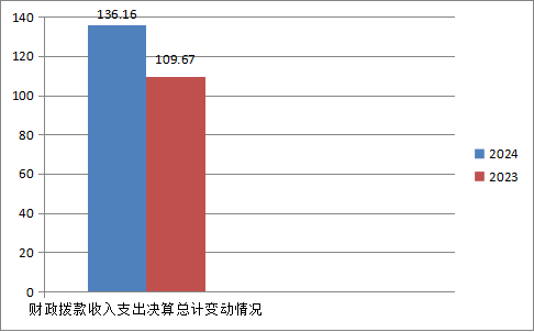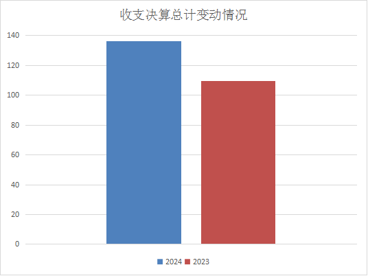 2024年度收、支总136.16万元。与2023年109.67万元相比,收、支总计各增加26.49万元,增长24.15%。主要增加原因是增加了机关职工晋升职务职级调资和单位退休人员死亡丧葬抚恤金等。