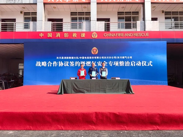 为切实推进消防安全应急通信保障能力建设以及燃气安全使用,建立长期、稳定、良好的战略合作关系,11月6日,沐川县消防救援大队与中国电信沐川分公司、沐川燃气公司签订战略合作协议,共同构建燃气安全使用信息网络。