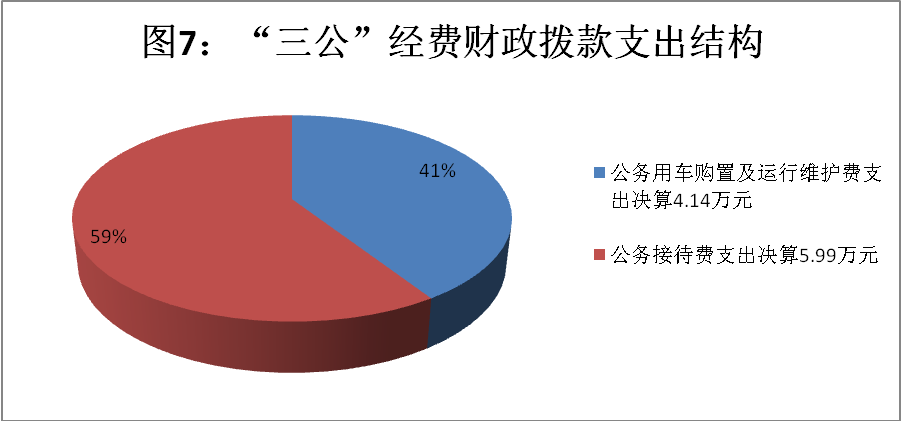2018年“三公”经费财政拨款支出决算中,因公出国(境)费支出决算0万元,占0%;公务用车购置及运行维护费支出决算4.14万元,占40.87%;公务接待费支出决算5.99万元,占59.13%。具体情况如下: