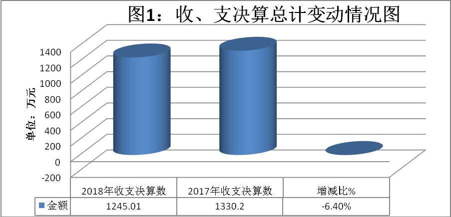 2018年度收、支总计1245.01万元。与2017年相比,收、支总计各减少85.19万元,下降6.4%。主要变动原因是脱贫攻坚进入对标补短阶段,农林水-扶贫支出减少162.19万元;但人员经费、住房保障均较上年均有正常增长。