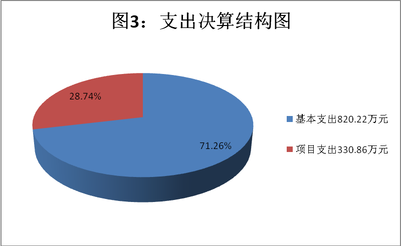 2018年本年支出合计1151.08万元,其中:基本支出820.22万元,占71.26%;项目支出330.86万元,占28.74%;上缴上级支出0万元,占0%;经营支出0万元,占0%;对附属单位补助支出0万元,占0%。