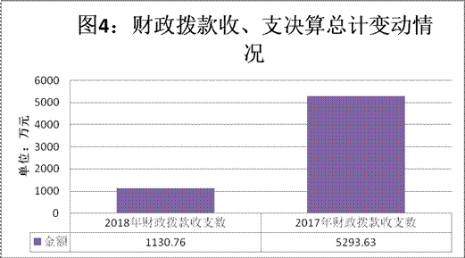 2018年度收、支总计1130.76万元。与2017年相比,收、支总计各减少4162.87万元,下降78.64%。主要变动原因是2018年结转至下年度的项目资金较2017年度大幅减少,造成收、支减少。