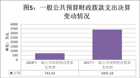 2018年一般公共预算财政拨款支出743.43万元,占本年支出合计的65.75%。与2017年相比,一般公共预算财政拨款减少2661.75万元,下降78.17%。主要变动原因是较2017年相比,2018年度项目支出大幅减少。
