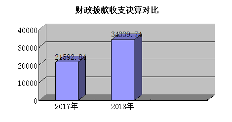 2018年度财政拨款收、支总计34339.74万元。与2017年21592.84相比,财政拨款收、支总计增加12746.90万元,上升59.03%。主要原因是2018年统筹整合财政涉农资金用于道路建设工程款按县上安排由主管部门负责支付。