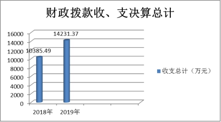 2019年财政拨款收、支总计14231.37万元。与2018年10385.49相比,财政拨款收、支总计各增加3845.88万元,增长27.02%。主要变动原因是项目增多、年末结转和结余数额较大。