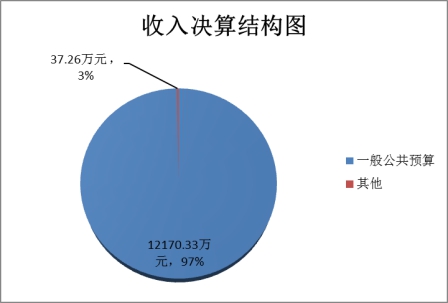 (一)部门财政资金收入情况。2019年本年收入合计12207.59万元,其中:一般公共预算财政拨款收入12170.33万元,占97%,其他收入37.26万元,占3%。年初结转和结余2098.28万元。