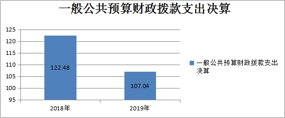 2019年一般公共预算财政拨款支出107.04万元,占本年支出合计的97.69%。与2018年相比,一般公共预算财政拨款减少15.44万元,下降12.61%。主要变动原因是人员经费支出减少