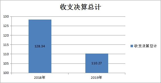 2019年度收、支总计110.27万元(其中本年财政拨款收入104.44万元,上年结转5.83万元)。与2018年相比,收、支总计下降18.07万元,下降14.08%。主要变动原因是人员经费支出和项目支出减少。