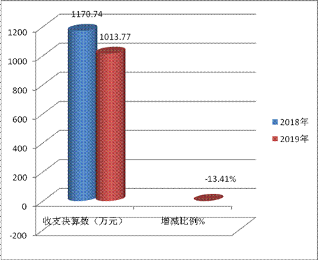 2019年度收、支总计1013.77万元。与2018年1170.74万元相比,收、支总计各减少156.97万元,下降13.41%。主要变动原因是其他扶贫支出项目补短板资金减少。