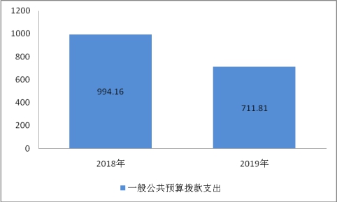 2019年一般公共预算财政拨款支出711.81万元,占本年支出合计的22.88%。与2018年相比,一般公共预算财政拨款减少282.35万元,下降28.40%。主要变动原因是下达的移民后扶项目资金减少。