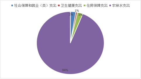 2020年一般公共预算财政拨款支出1189.65万元,主要用于以下方面:社会保障和就业(类)支出31.04万元,占2.61%;卫生健康支出9.21万元,占0.77%;住房保障支出31.85万元,占2.68%;农林水支出1117.55万元,占93.94%。