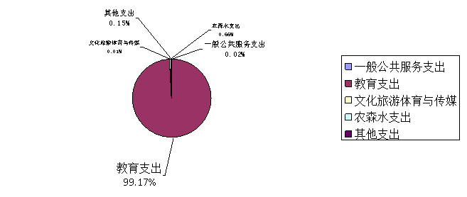 2020年一般公共预算财政拨款支出37828.93万元,主要用于以下方面:一般公共服务支出(类)6.00万元,占0.015%;教育支出(类)37516.17万元,占99.17%;文化旅游体育与传媒(类)支出2.00万元,占0.005%;农林水(类)支出249.19万元,占0.66%;其他支出(类)支出55.57万元,占0.15%。