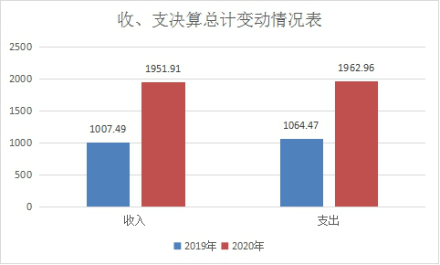 2020年财政拨款收入总计1951.91万元、支出总计1962.96万元。与2019年相比,收入增加944.42万元,上升了 93.73%。支出增加898.49万元,上升84.4%。主要变动原因是镇镇区划调整后增加了机构数和人员数以及今年安排财政返还额度冲减预拨款较多。