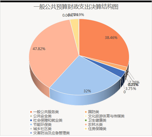 2020年一般公共预算财政拨款支出1941.53万元,主要用于以下方面: 一般公共服务(类)支出746.89万元,占38.46%;国防(类)支出2.26万元,占0.11%;公共安全(类)支出1万元,占0.005%;文化旅游体育与传媒(类)支出4万元,占0.20%;社会保障和就业(类)支出72.97万元,占3.75%;卫生健康(类)支出46.98万元,占2.41%;节能环保(类)支出60.73万元,占3.12%;农林水(类)支出928.59万元,占47.82%;城镇社区(类)支出1.35万元,占0.06%;住房保障(类)支出72.97万元,占3.75%;灾害防治及应急管理(类)支出3.8万元,占0.19%。