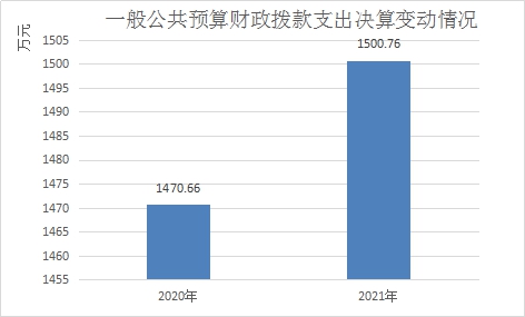 2021年度收、支总计1500.76万元。与2020年相比,收、支总计各增加30.10万元,增长2.05%。主要变动原因是年初结转和结余43.14万元。