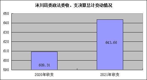 2021年度收、支总计643.66万元。与2020年相比,收支总计增加34.35万元,增长5.64%。主要变动原因是人员增加、正常工资调资、“雪亮”工程项目增加。