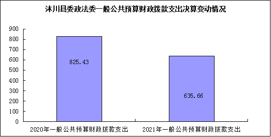 2021年一般公共预算财政拨款支出635.66万元,占本年支出合计的100%。与2020年相比,一般公共预算财政拨款支出减少189.77万元,减少23 % ,减少的原因是综治中心规范化建设以及雪亮工程项目等已完工支出减少。