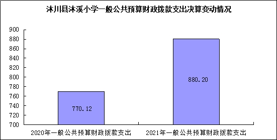 2021年一般公共预算财政拨款支出880.20万元,占本年支出合计的100%。与2020年相比,一般公共预算财政拨款支出增加110.08万元,增长14.29%。主要变动原因是2020年8月将原沐溪学校拆分为沐溪小学和沐溪初级中学,故经费只有4个月。