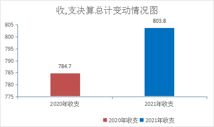 2021年度收、支总计803.80万元。与2020年(784.7万元)相比,收、支总计各增加19.1万元,增长0.024%。主要变动原因是年初结转和结余,以及一般公共预算财政拨款收入增加。