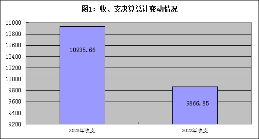 2023年度收、支总计均为10935.66万元。与2022年度相比,收、支总计各增加1068.81万元,增长10.83%。主要变动原因是2023年专项资金增加,加之以前年度部分项目完工审计,项目支付增加。