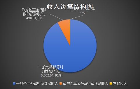 2023年度本年收入合计6543.18万元,其中:一般公共预算财政拨款收入6032.64万元,占92.19%;政府性基金预算财政拨款收入498.81万元,占7.62%;国有资本经营预算财政拨款收入0万元,占0%;上级补助收入0万元,占0%;事业收入0万元,占0%;经营收入0万元,占0%;附属单位上缴收入0万元,占0%;其他收入11.72万元,占0.17%。