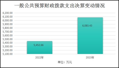 2023年度一般公共预算财政拨款支出6083.43万元,占本年支出合计的92.25%。与2022年度相比,一般公共预算财政拨款支出增加630.77万元,增长12%。主要变动原因是基础设施项目增加。
