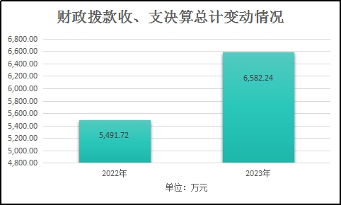 2023年度财政拨款收、支总计均为6582.24万元。与2022年度相比,财政拨款收入增加1090.52、支出减少50.79万元。主要变动原因是项目收入增加。