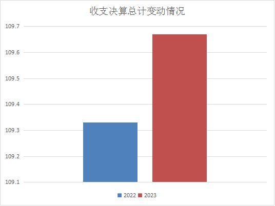 2023年度收、支总109.67万元。与2022年109.33万元相比,收、支总计各增加0.34万元,增长0.31%。主要增加原因是社保缴费比例增加。