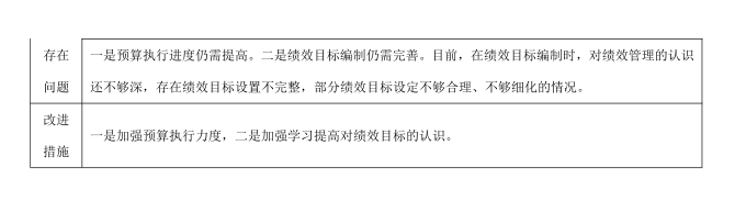 (二)存在问题。2024年,供销社部门预算资金管理工作整体向好,但仍存在不足。一是预算执行进度仍需提高。二是绩效目标编制仍需完善。目前,在绩效目标编制时,对绩效管理的认识还不够深,存在绩效目标设置不完整,部分绩效目标设定不够合理、不够细化的情况。