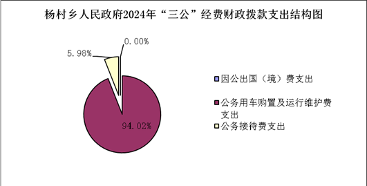2024年度“三公”经费财政拨款支出决算中,因公出国(境)费支出决算0万元,占0%;公务用车购置及运行维护费支出决算4.4万元,占94.02%;公务接待费支出决算0.28万元,占5.98%。具体情况如下: