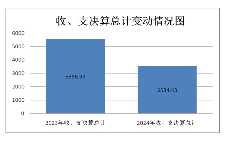 2024年度收、支总计均为3534.43万元。与2023年度相比,收、支总计各减少2022.56万元,下降36.4%。主要变动原因是2024年森林生态效益项目支出减少。