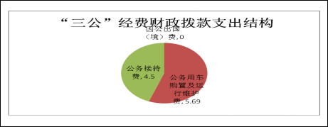 2024年度“三公”经费财政拨款支出决算中,因公出国(境)费支出决算0万元,占0%;公务用车购置及运行维护费支出决算5.69万元,占55.8%;公务接待费支出决算4.5万元,占44.2%。具体情况如下:
