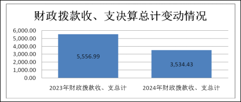 2024年度财政拨款收、支总计均为3,534.43万元。与2023年度相比,财政拨款收、支总计各减少2022.56万元,下降36.4%。主要变动原因是2024年森林生态效益项目支出减少。