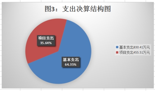 2024年本年支出合计1285.92万元,其中:基本支出830.41万元,占64.35%;项目支出455.51万元,占35.64%。(如图3)