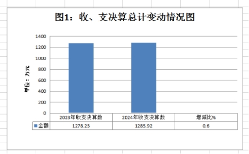 2024年度收、支总计1285.92万元。与2023年相比,收、支总计各增加7.69万元,上升0.6%。主要变动原因是农林水类较上年大幅增加。(如图1)