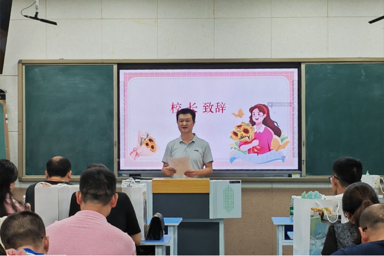 曹敏重点表扬“光荣在岗四十年”始终躬耕教坛、扎根教育的邓家富等三名老教师,介绍他们的从教经历和感人事迹,号召中青年教师要向前辈致敬,学习前辈的工作态度和敬业精神。教师代表为他们献上礼品和鲜花,感谢他们为教育事业奉献美好青春,发挥模范带头作用。