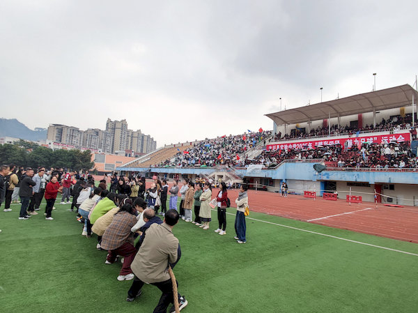 老师们也分年级组织拔河对抗赛,增强体质,与生同乐。