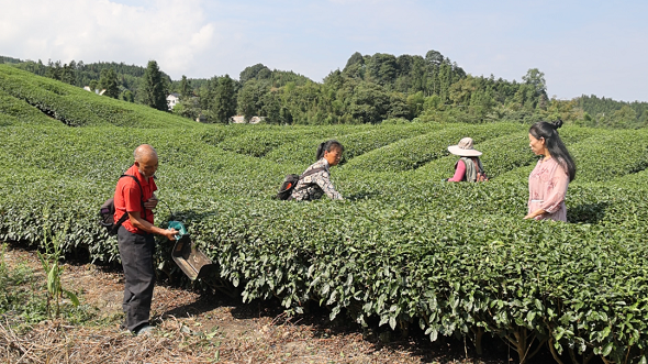 金秋时节,沃野生金,走进位于利店镇珠溪村的白马山茶叶现代农业园区,只见茶农们在农技人员的悉心指导下,正忙着给茶树进行除草、修枝等管护工作,为来年春茶稳产高产做足准备。“我们主要修剪病虫害的枝条、无用的小枝丫及较弱的枝条,树下也要修剪,让茶园通风透光,减少茶树的消耗,积累更多营养,增强茶树的冬季抗寒能力。”利店镇农业综合服务中心农艺师郑素容介绍。俗话说“三分种,七分管”。好茶既是种出来的,也是管出来的。为促进茶叶提质增效,做强做大茶叶产业链,利店镇通过广泛宣传,引导茶农树立“长年管理,精细劳作”的理念,同时邀请专业技术人员到田间地头对茶园管护进行现场指导,切实解决茶农在实际管理过程中存在的困难。“珠溪村现有茶园2000余亩,已完成800余亩的管护工作,接下来,我们将抢抓晴好天气,争取早日完成剩余的茶树管护。”珠溪村驻村第一书记满茂林表示。茶园管护不仅提高了茶叶的产量和品质,也为当地村民提供了家门口就业的机会。“我家就在不远处,离茶园很近,我一年四季都在这茶园里干活挣钱,务工收入还是很可观。”珠溪村村民邓秀珍说。