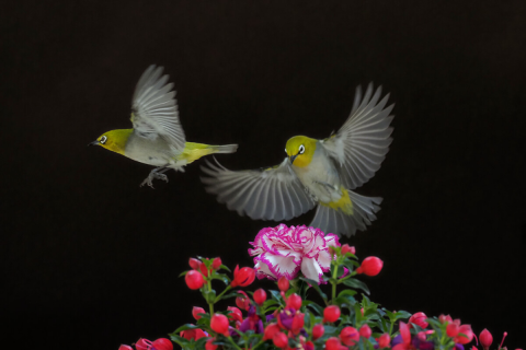 暗绿绣眼鸟(学名:Zosterops japonicus),共有9个亚种,小型鸟类,体长9-11cm。上体绿色,眼周有一白色眼圈极为醒目。下体白色,颏、喉和尾下覆羽淡黄色。