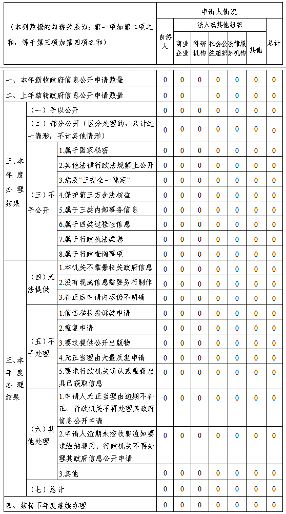 三、收到和处理政府信息公开申请情况