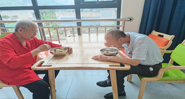 搬迁完后,沐川县失能老年人照护中心的炊事员们为老人们准备了精细的饭菜,老人们高兴地吃着饭,愉快地聊着家常,脸上充满了笑容,真正诠释了“老有所养、老有所依”。