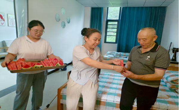 (图九:沐川县养护中心为老人们准备西瓜解暑)
