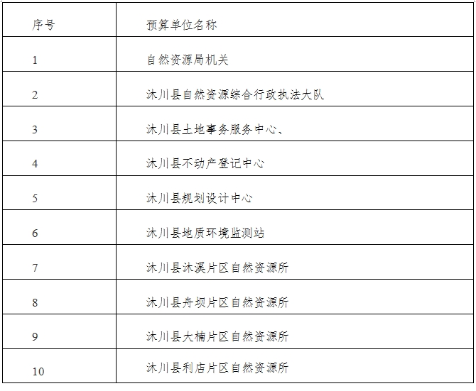 自然资源局下属二级预算单位10个,其中行政单位1个,参照公务员法管理的事业单位1个,其他事业单位8个。主要包括: